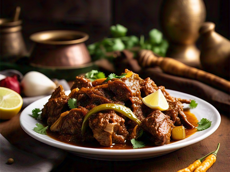 is a spicy and tangy meat dish made with pickling spices for a bold, zesty taste.