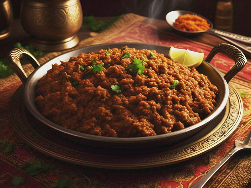 is a rich and aromatic dish where minced meat is slow-cooked with whole spices, creating layers of deep, warm flavors.