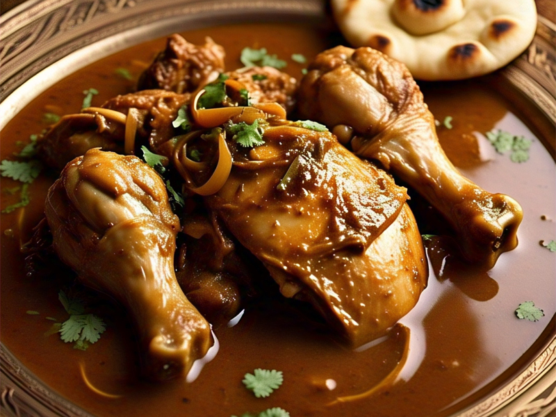 Chicken Nehari is a lighter version, featuring tender chicken cooked in a silky, spiced gravy thickened with wheat flour and infused with ginger and warm spices.