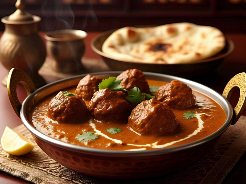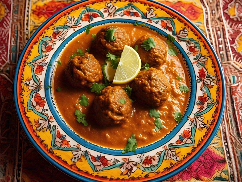 Mutton Qofta Curry has a deeper taste, with juicy mutton meatballs simmered in a thick, flavorful gravy.
